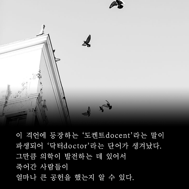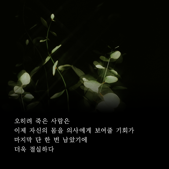 살아 있는 사람에게만 의사가 필요한 것은 아니다. 오히려 죽은 사람은 이제 자신의 몸을 의사에게 보여줄 기회는 마지막 단 한 번뿐이 남지 않았기에 더욱 절실하다.