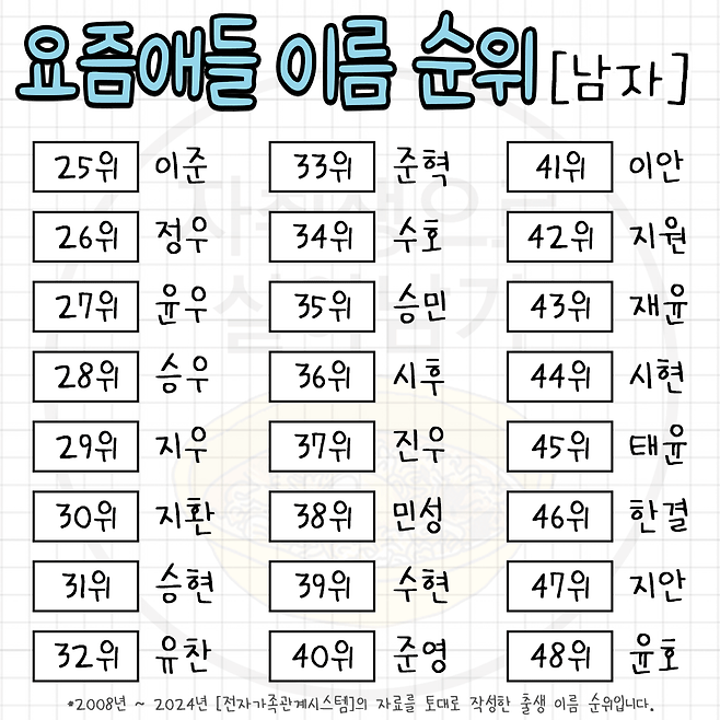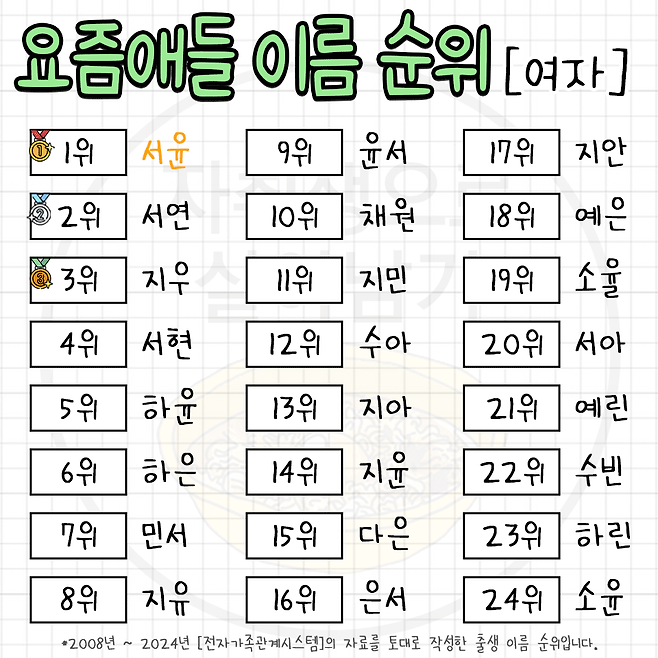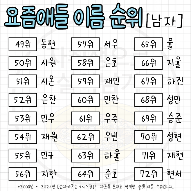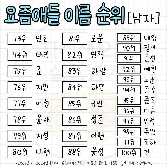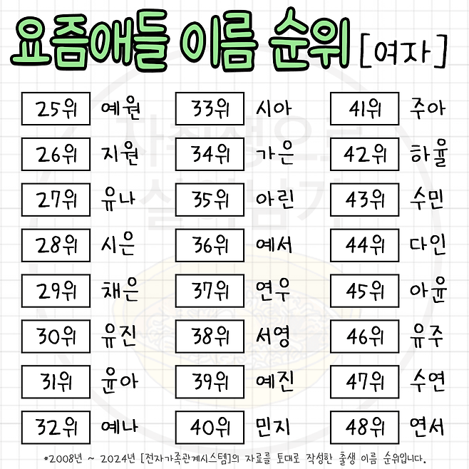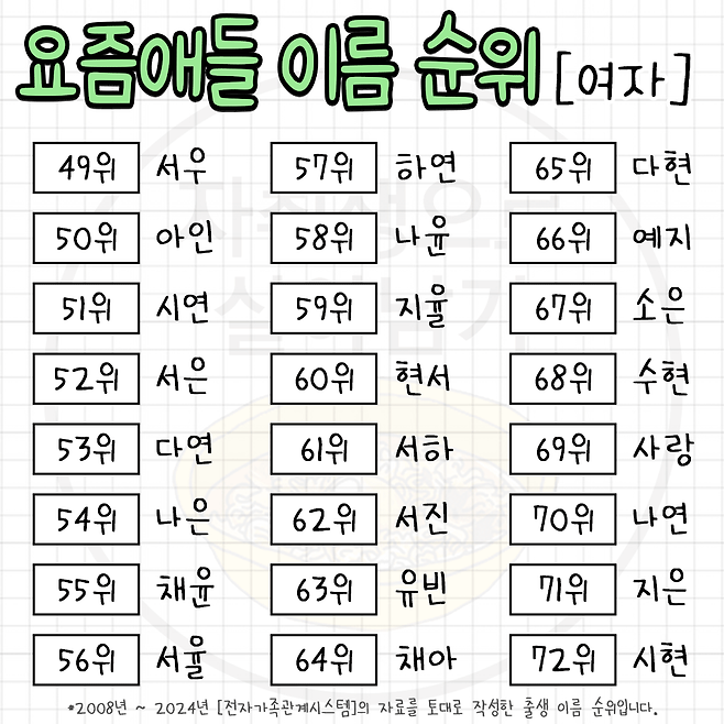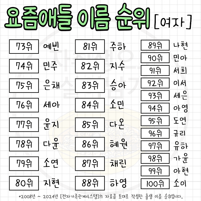 요즘 뜨고 있다는 한국 남녀 이름 순위 TOP 100