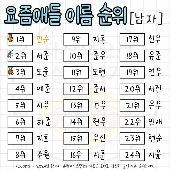 요즘 뜨고 있다는 한국 남녀 이름 순위 TOP 100