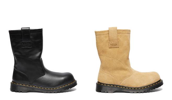 이번 닥터마틴 X 스투시 콜라보레이션 컬렉션은 블랙과 샌드 컬러 두가지 색상으로 출시되며, 블랙은 와나마 가죽, 샌드는 헤어리한 텍스쳐가 돋보이 스웨이드 소재로 제작되어 서로 다른 매력의 워크웨어 헤리티지를 잘 보여주는것 같습니다.