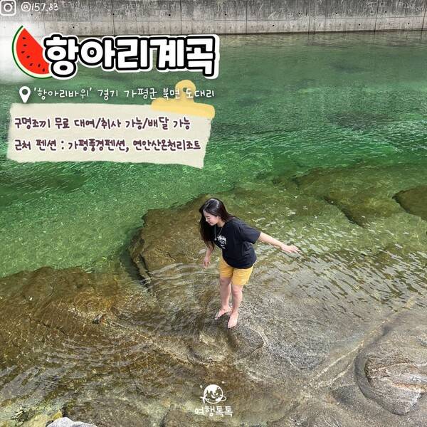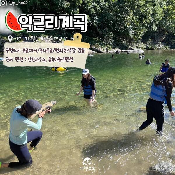 오늘 여행톡톡에서는 서울에서 1시간 30분 거리에 있는 가평의 수심 깊은 계곡들을 소개해드릴텐데요. 깊은 수심이 있는 계곡의 정확한 주소를 표시해두어 계곡을 따라 올라가며 물놀이 장소를 물색할 필요가 없습니다.