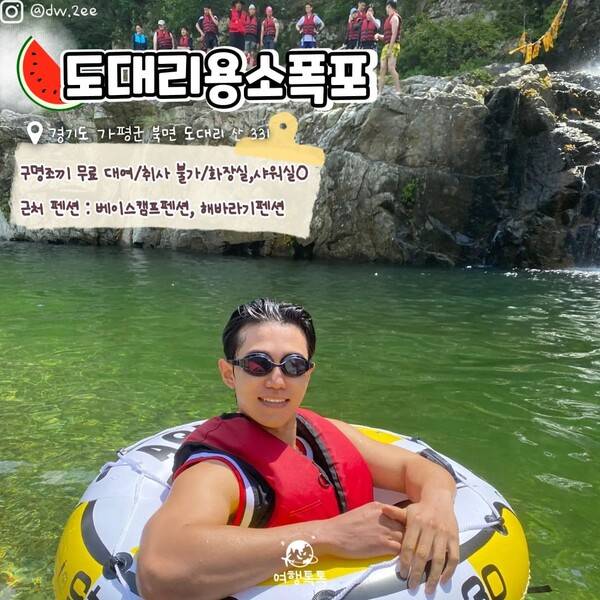 가평 도대리 용소폭포에는 성수기에만 화장실과 샤워실이 운영되고 있어 당일치기 가평 계곡으로도 적합합니다. 계곡의 운영 시간은 오전 9시부터 오후 6시까지이며 안전을 위해 야간 물놀이는 금지되어 있습니다.