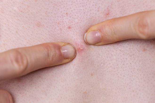 보기 싫다는 이유로 몸 여드름을 억지로 짜는 경우가 있는데요. 절대 해서는 안 되는 행동입니다. 손으로 짜면 세균으로 인한 2차 감염이 진행될 수도 있습니다. 게다가 손의 압력은 고르지 않아서 여드름을 짜다가 고름이 밖으로 나오지 않고 진피 속으로 더 깊이 들어가서 염증이 악화될 가능성이 큽니다. 피지선이 파괴될 수도 있죠.