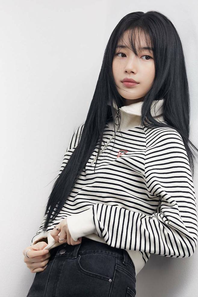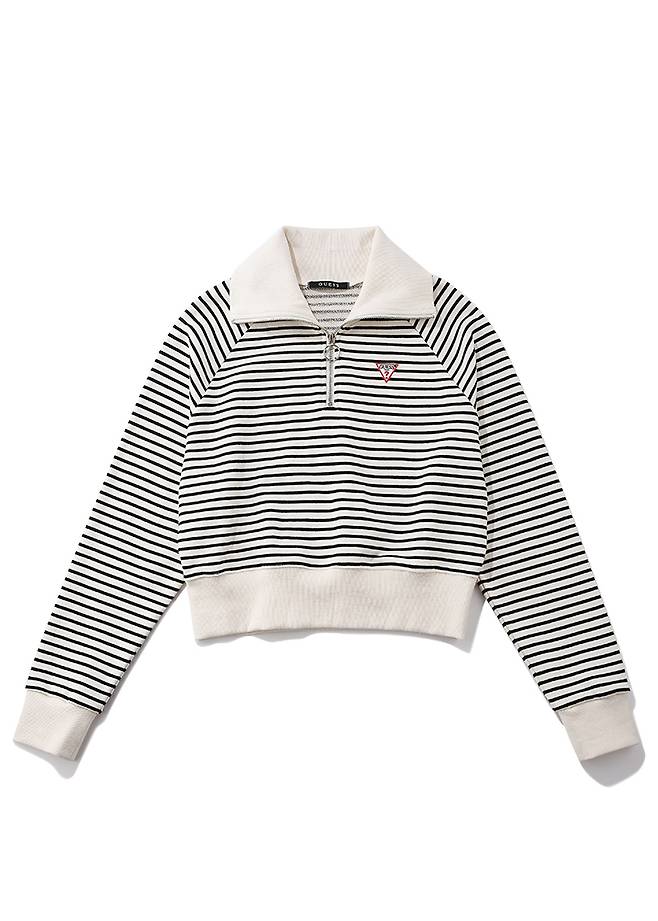 스트라이프 하프집업 맨투맨인데요.살짝 크롭한 기장감에 여유 있는