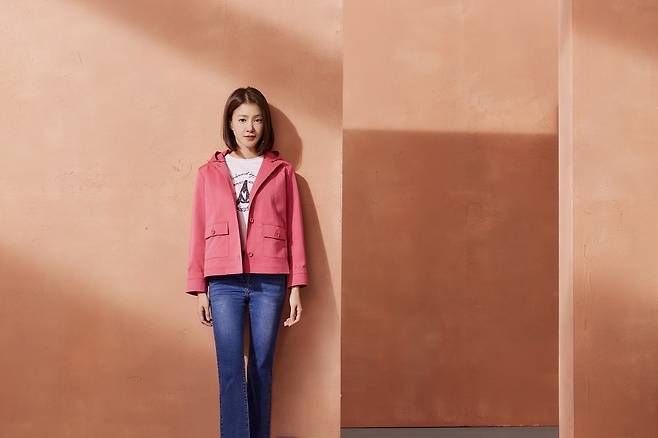 얼굴을 밝혀주는 핑크 컬러의 자켓과