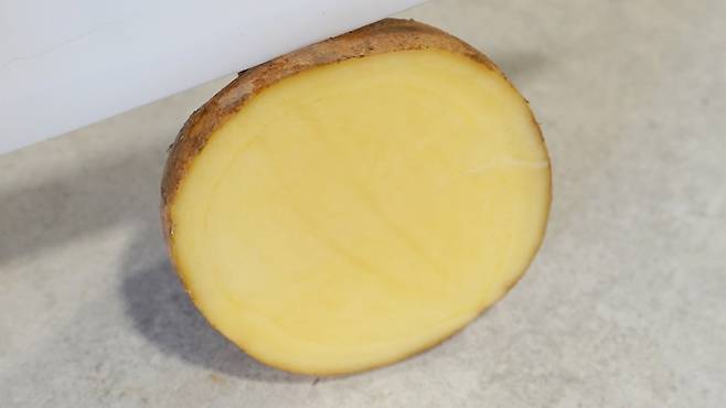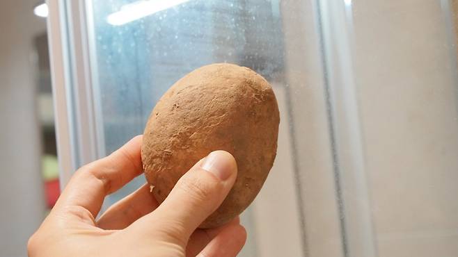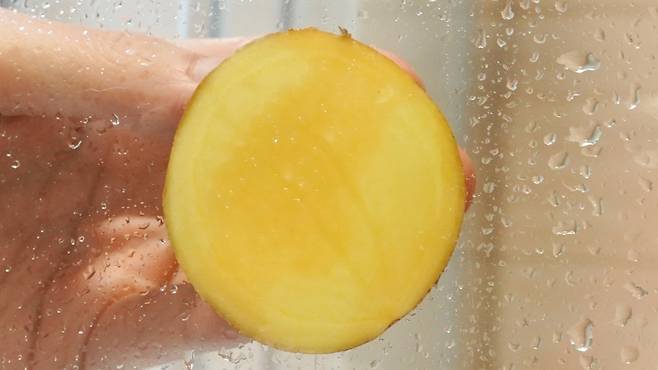 샤워부스 물때 제거를 위한 첫 번째 스탭은 바로 감자를 준비하는 것이에요.