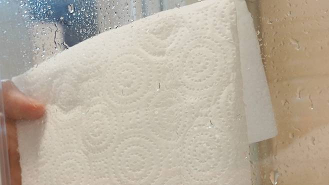 부드러운 천이나 키친타월 등을 이용해 샤워부스에 있는 물기를 모두 제거하세요. 와이퍼를 이용해 물기를 제거해도 좋답니다.