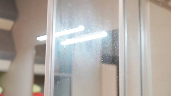 이후 확인해 보면! 전에 있던 물때가 완벽하게 제거된 모습을 볼 수 있어요. 뿌옇게 변했던 유리도 완전히 투명해져 시원시원하게 볼 수 있답니다.