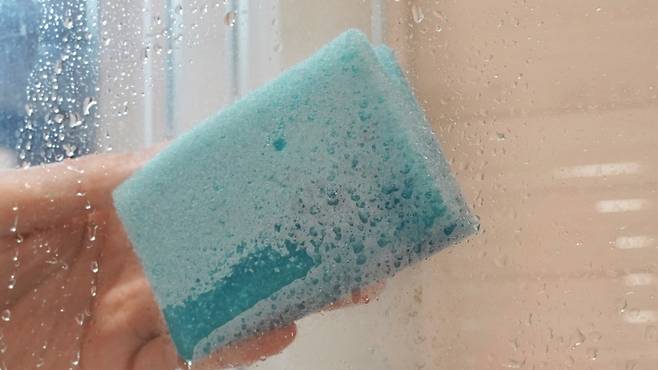물때 제거 전에 미리 20~30분 정도 전에 따듯한 물을 이용해 유리를 충분히 불려 주세요. 만약 샤워 후에 닦으신다면 더욱 좋답니다.