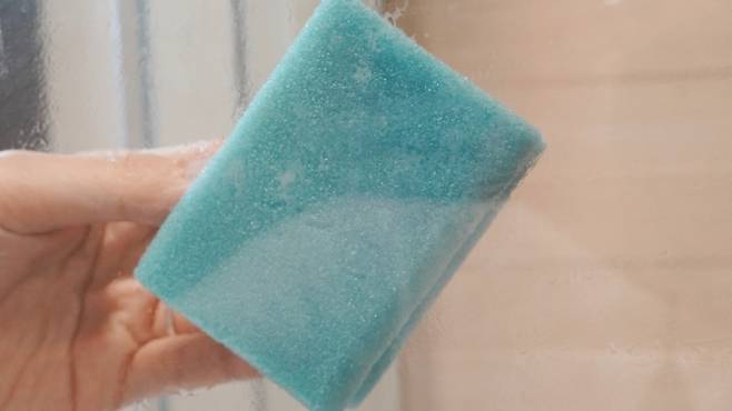 이후 감자 전분을 부드러운 스펀지로 닦아 주세요. 그리고 물로 여러 번 헹궈 감자 전분을 깨끗이 제거해 줍니다.