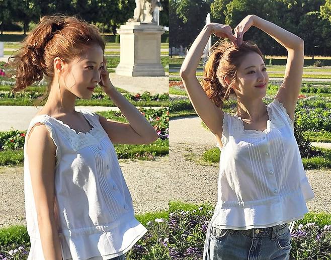 이세영은 깔끔하게 묶은 포니테일 헤어스타일의 과하지 않게 볼륨을 살린 뿌리와, 자연스럽게 흘러내리는 잔머리로 발랄함과 로맨틱한 분위기를 동시에 자아냈습니다.