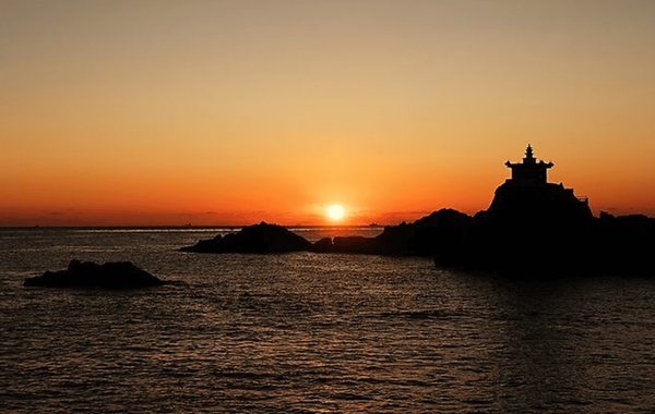부산의 다대포 해수욕장 옆 몰운대는 비교적 덜 알려져 있어 북적임 없이 일출을 감상할 수 있는 명소입니다. 중절모처럼 생긴 모자섬 옆으로 떠오르는 붉은 해는 감동적인 풍경을 연출하며, 이곳의 고즈넉한 분위기는 부산의 다른 해변과는 또 다른 매력을 느끼게 합니다.