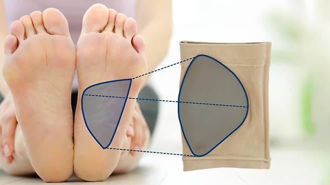 발바닥의 아치부분에 붙히고
