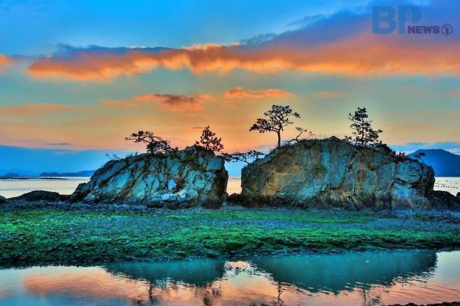 갈두항 땅끝 선착장 앞에 자리한 두 개의 바위섬은 태양이 수평선 너머로 떠오르거나 질 때 장엄한 풍경을 연출하며, 마치 자연이 만들어낸 한 폭의 그림 같은 장관을 자아낸다.