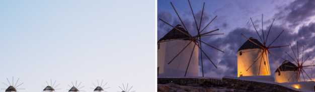 미코노스의 또 다른 랜드마크는 카토밀리 풍차지구(Kato Milli Windmills)다. 과거에 곡식을 빻는 방앗간이었던 카토밀리 풍차는 원통형 몸체에 초가지붕을 얹었다. 16세기에 지어져 오랜 역사를 품고 있으며, 20세기 초까지 북풍에 의한 움직임을 이용해 곡물을 빻았다. 원래는 16개의 풍차가 있었지만 오늘날에는 5개만이 남아있다. 풍차 언덕에서는 리틀 베니스를 한눈에 내려다볼 수 있다.