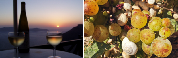산토리니는 수준급 와인으로도 명성이 높다. 기원전 약 1200년에 포도 재배가 시작된 것으로 알려지며, 산토리니의 토착 품종인 아시르티코(Assyritiko) 백포도가 재배된다. 강한 시트러스 향을 특징으로 하는 산토리니산 와인은 섬 내의 와이너리에서 제공된다. 대부분의 와이너리는 시음을 포함한 투어를 진행하여 제조 과정과 함께 신선한 와인을 맛볼 수 있다.