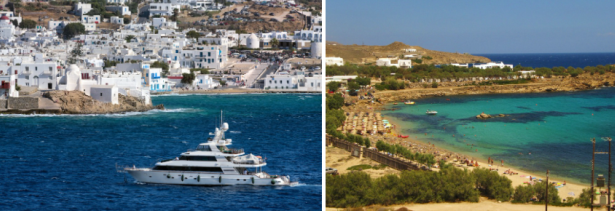 미코노스는 키클라데스 제도에서 가장 럭셔리한 섬으로 알려져 있다. 미코노스는 불과 몇십년 전까지만 해도 전기조차 들어오지 않던 작은 시골 섬이었다. 1960년대부터 휴가지로 주목받기 시작한 미코노스는, 요트와 화려한 별장, 고급 호텔로 가득 찬 럭셔리한 섬으로 빠르게 탈바꿈했다. 오늘날에는 많은 할리우드 스타 및 전 세계 부호들이 사랑하는 여름 휴가지로 자리매김했다. 미코노스는 파티의 섬으로도 유명하다. 미코노스에서는 매년 세계적인 DJ들의 공연을 볼 수 있는 페스티벌과 파티가 열린다. 뿐만 아니라 미코노스의 유명 해변인 파라다이스 비치(Paradise Beach)에 들어선 수십 개의 레스토랑, 바, 나이트클럽에서는 밤새워 파티가 벌어진다.
