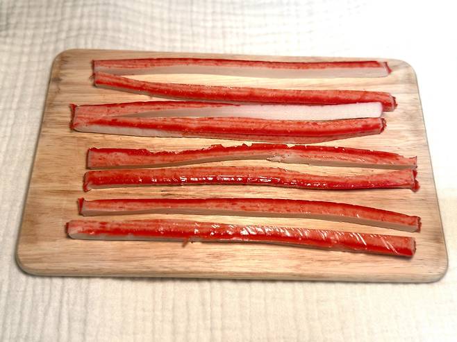 1️⃣ 김밥용 게맛살을 준비했어요.