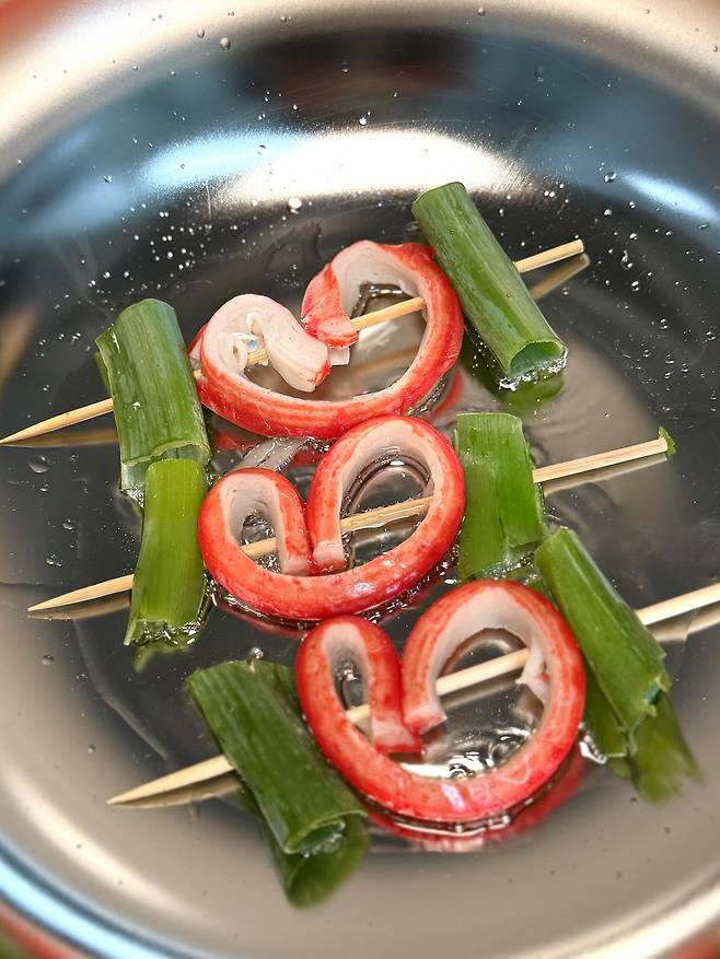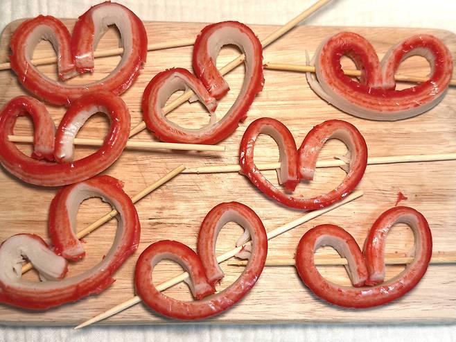 2️⃣ 게맛살을 하트 모양으로 만들되,