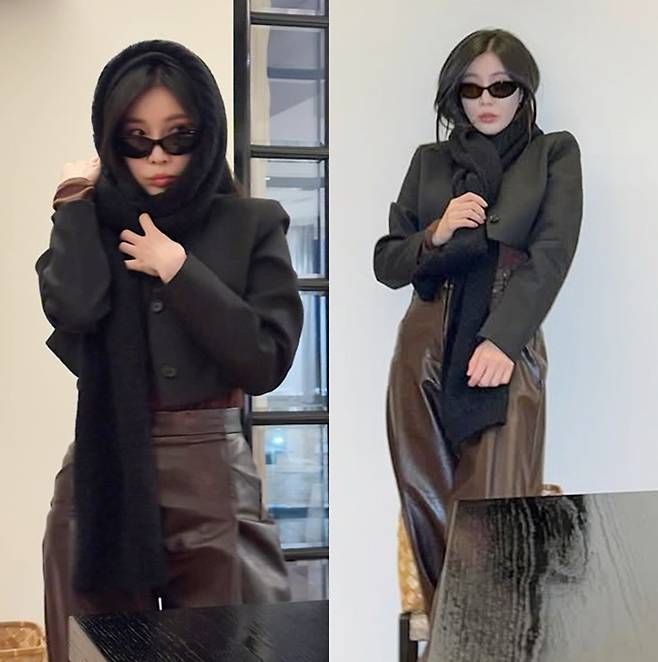 공개한 사진에서 이해리는 강민경한테 받은 목도리를 하고 통이 넓은 와이드 핏가죽 팬츠에 크롭 재킷을 입고 힙하면서도 스타일리시한 생일 파티룩을 선보였다.