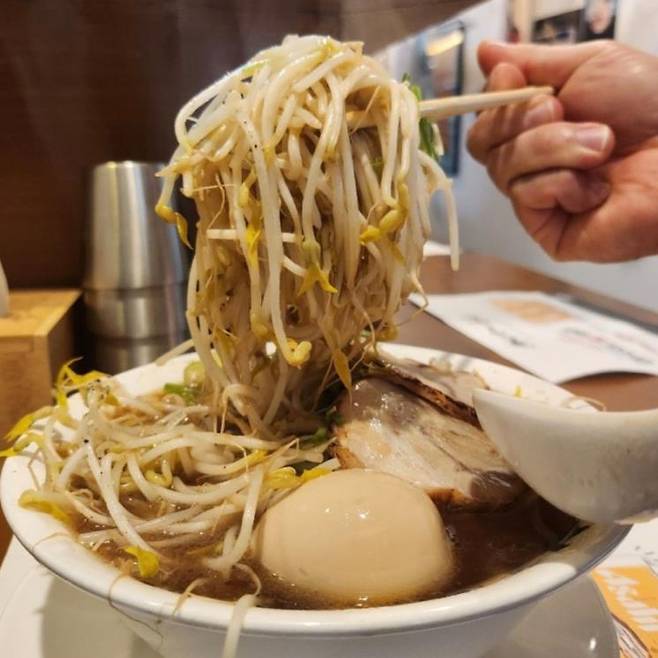 압도적인 비주얼을 자랑하는 일명 ‘산더미’ 라멘.