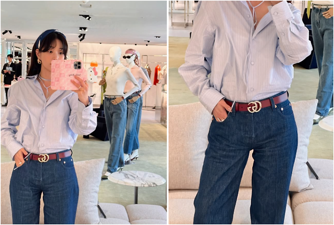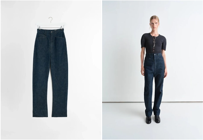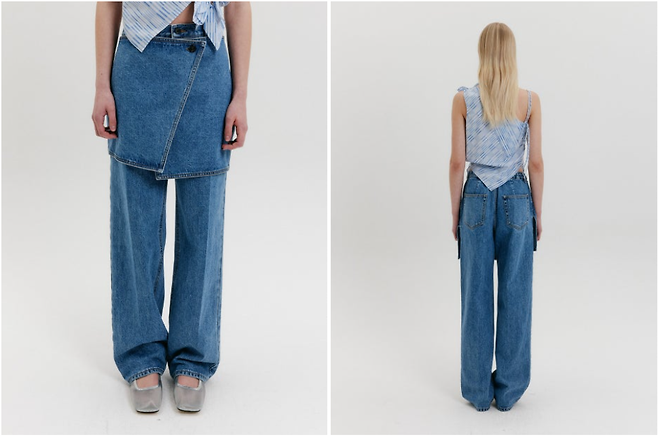 세미 와이드 핏 미드라이즈 데님 팬츠였어요.