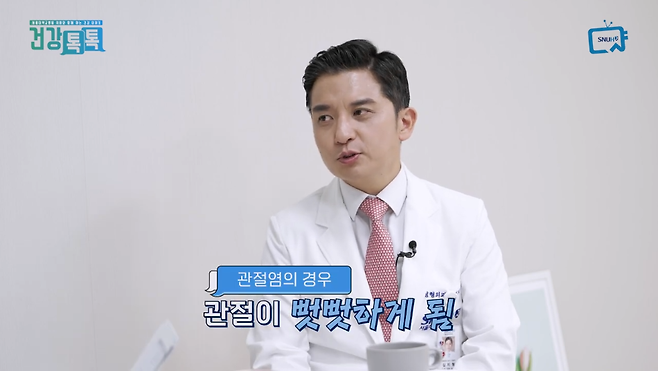 또한 류마티스 관절염과 퇴행성 관절염 모두 관절이 뻣뻣해집니다.