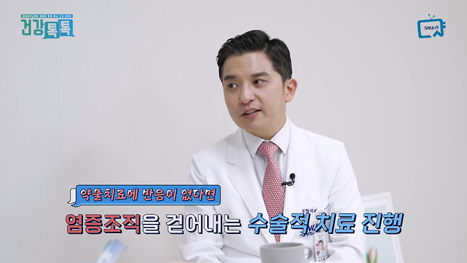 만약 약물치료에도 반응이 없다면 염증조직을 걷어내는 수술적 치료를 진행해야 합니다.