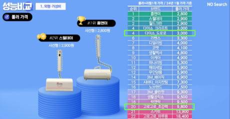 롤러의 가격과 리필 가격도 비교해 보았습니다.