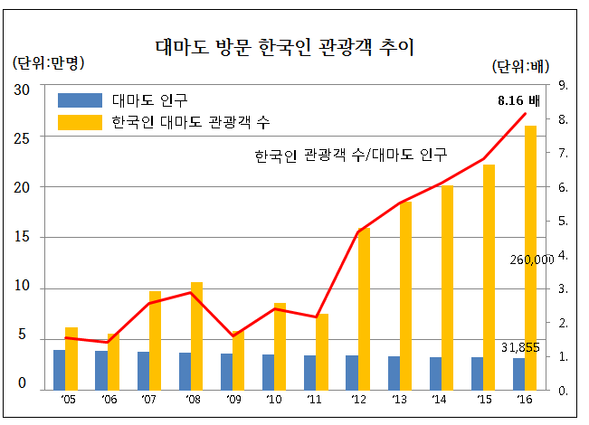 우리나라에서 가장 가까운 일본의 관광지인 대마도는 저렴한 비용으로 일본 여행을 갈 수 있다는 장점으로 한때는 대마도 인구의 10배가 넘는 한국인 관광객들이 찾아올 정도로 인기 여행지였습니다. 그로 인해 경제적으로 대마도에 가장 큰 영향을 끼치는 산업은 바로 관광업, 특히 한국인 관광객을 대상으로 한 관광 산업입니다. 대마도 전체 주민들이 생계를 이어나갈 정도로 한국인 관광객의 의존도가 높았던 곳입니다.