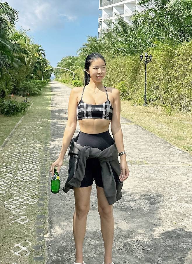 줄리엔강의 아내이자 인기 유튜터 제이제이(박지은)가 베트남에서도 바이커 쇼츠와 홀너텍 리조트룩으로 몸짱녀의 건강미를 드러냈다.