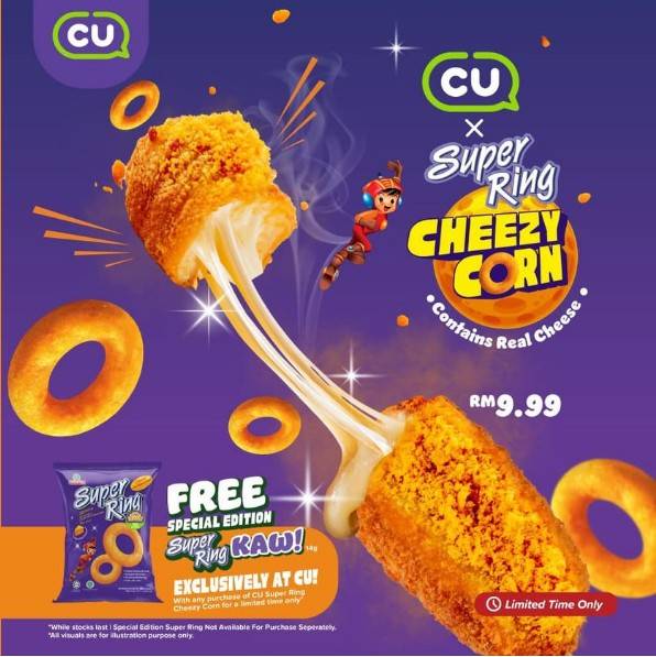 편의점 CU 말레이시아 역시 10월에 현지 제과식품회사 오리엔탈 푸드 인더스트리(Oriental Food Industry Holding Berhad)와의 협업으로 '슈퍼링 치즈콘'을 출시했다. '슈퍼링 치즈콘'은 슈퍼링 과자로 코팅한 치즈 핫도그로, 현재 해당 제품을 구매하면 슈퍼링 과자(14g)를 무료 증정하는 행사 진행 중이다.