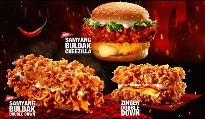 한국농수산식품유통공사(aT)에 따르면 KFC 말레이시아는 지난 10 말 삼양식품과의 협업을 통해 불닭볶음면을 활용한 2가지 시즌 한정 메뉴를 선보였다. 한정 메뉴는 징거 필렛 2장 사이에 '불닭볶음면'을 넣은 '삼양 불닭 더블다운'과 패티에 불닭소스를 입힌 '삼양 불닭 치즐라' 등 신메뉴 2종이다.