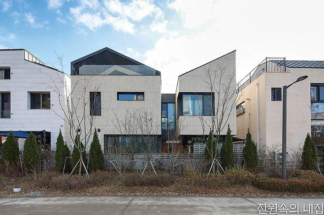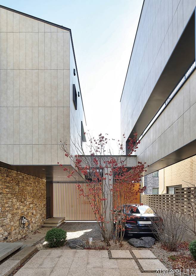 건축주 안승현, 박선자 씨 부부는 오래전부터 번거롭고 부자유스러운 아파트 대신 오롯이 자유를 누리는 주택에서의 삶을 고민해 왔다. 그렇다고 어디 한적한 전원이나 시골로 떠나 직장이라는 현실과 도시의 편리함을 포기하기도 어려웠다. 부부가 공원과 맞닿은 신도시 단독주택 택지에 집터를 마련한 것은 어쩌면 당연한 순서였다.