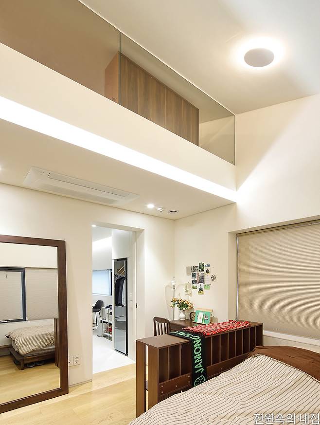 가족 각각의 개인 공간은 2층에 놓였다. 가족실을 중심에 두고 자녀 방과 부부 침실이 약간의 거리를 두고 배치됐다. 가족 각자의 공간은 침실을 콤팩트하게 두고 드레스룸과 욕실, 다락 등의 공간을 넉넉하게 두어 다양한 기능과 역할을 할 수 있도록 했다.