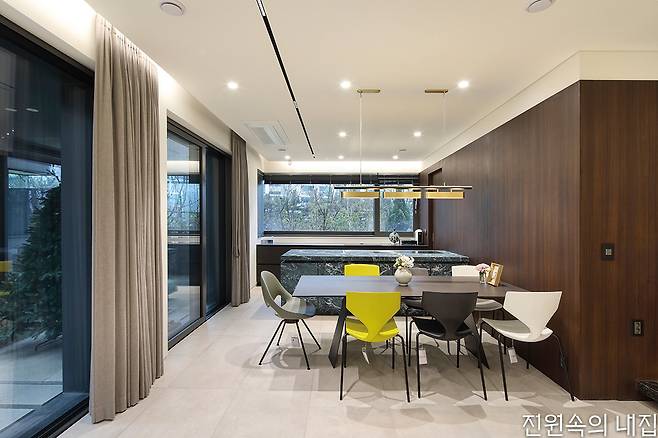 계속 아파트에서 살다 처음 주택 생활을 시작한다는 부부는 이곳에서의 일상에 적응하며 자유로움을 한껏 만끽하고 있다. 비 오는 날 빗방울이 떨어지는 모습을 거실에서 음악과 함께 즐기거나 때론 수공간을 흐르는 물소리를 들으며 ‘물멍’을 하기도 한다. 관리가 번거로울까도 싶었지만, 아파트보다 생활 동선이 짧아져 오히려 편해졌다는 이야기를 전하기도 했다.