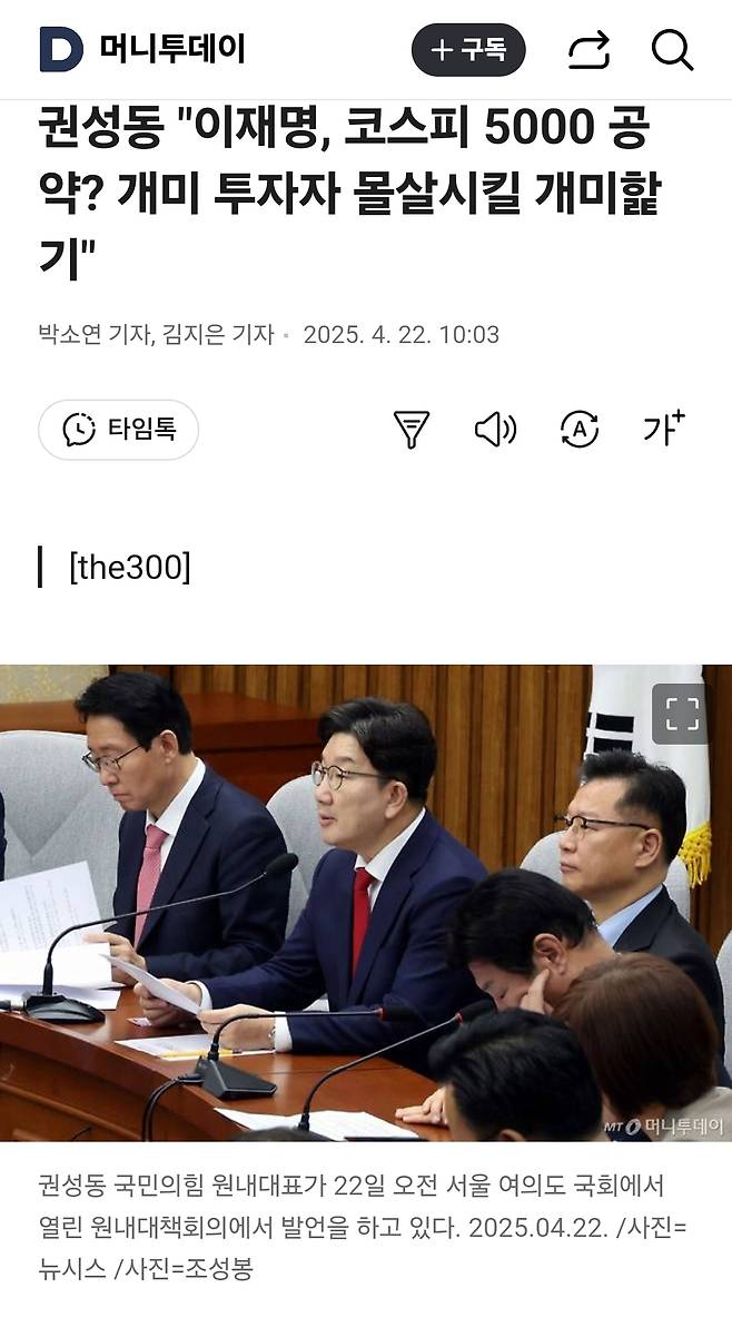 권 원내대표는 "국민의힘은 이재명 전 대표의 개미핥기 난동을 반드시 막아내겠다. 민주당식 반시장 포퓰리즘과 입법폭주를 단호히 막아내고 개미투자자의 든든한 방패가 되겠다"고 강조했다.