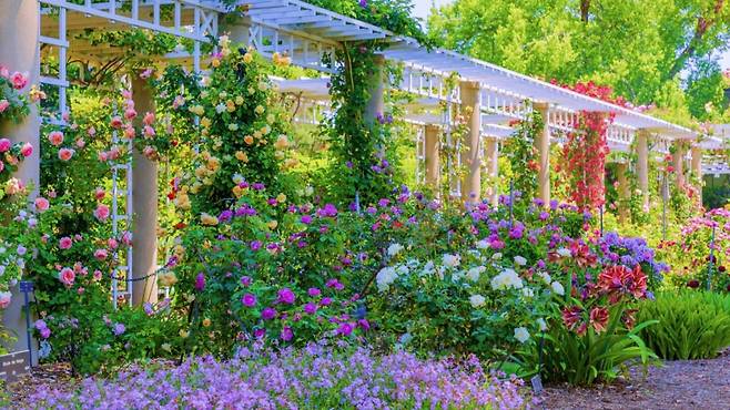 그래서 장미 정원 속을 걷는 것보다 덩굴장미가 만들어낸 그늘 아래를 지나치는 산책이 더 특별하게 다가온다.