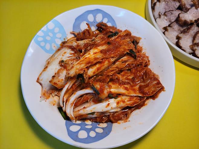 그동안 김치는 손으로 찢어서 준비