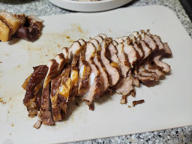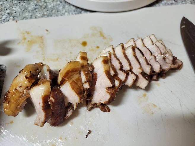 칼을 도자기 그릇 뒤에 갈아서 썰었어요 ㅋㅋㅋ