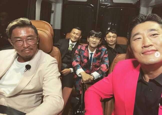 특히 김동현과 이용진은 시선강탈 화려한 색의 슈트를 입고 있다. 전 SBS 아나운서 장예원은 “용진 오빠랑 둘이 세상 모든 색 다 가져갔네ㅋㅋ”라는 댓글을 남겼다. 김동현은 “우리 팀이 섹시 매미팀이라 옷이”라고 답했다.