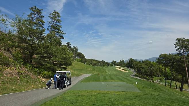 산이나 개울을 넘겨치는 등 티샷 하기 어려운 홀도 제법 있고 페어웨이 언듈레이션과 그린 주변 벙커도 제법 많아 난도가 있다 생각됩니다. 하지만 코스가 예쁘고, 시원해서 플레이하기는 좋았던 것 같아요. 아쉬운 점은 티박스 매트, 페어웨이에 많은 디봇, 느린 그린 스피드였네요. 디봇 관리와 그린 스피드를 개선하면 좋을 것 같아요.