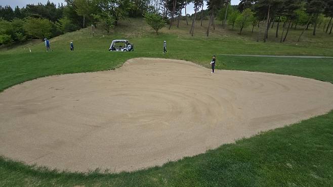 벙커가 곳곳에 위치하고 벙커 턱도 높은 곳이 꽤 있습니다.