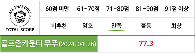 이상, 골프존카운티 무주CC 후기를 바칩니다. 버럭스마일 님의 소중한 후기에 감사드립니다.^^