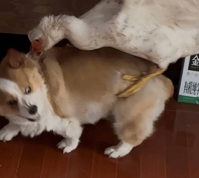 이 강아지, 정말 머리가 비상해요. 정면 승부 대신 계속 몸을 빙글빙글 돌리면서 엉덩이로만 슬쩍슬쩍 들이댑니다. 웰시코기 엉덩이는 워낙 가죽이 두툼하고 살집도 많아서, 웬만큼 부딪혀도 아프지 않을 테니 코기만의 전술이죠. 이런 귀여운 장면을 보고 있으면 절로 미소가 납니다.