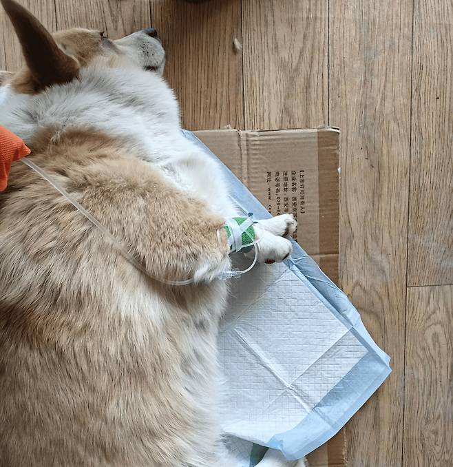 물론 이 영웅 코기에게도 고난은 있었습니다. 한번은 닭을 쫓아 도망가다가 다른 강아지에게 엉덩이를 물려 구멍이 몇 개나 났고, 결국 일주일이나 수액치료를 받으며 꼬리를 축 늘어뜨려야 했죠.