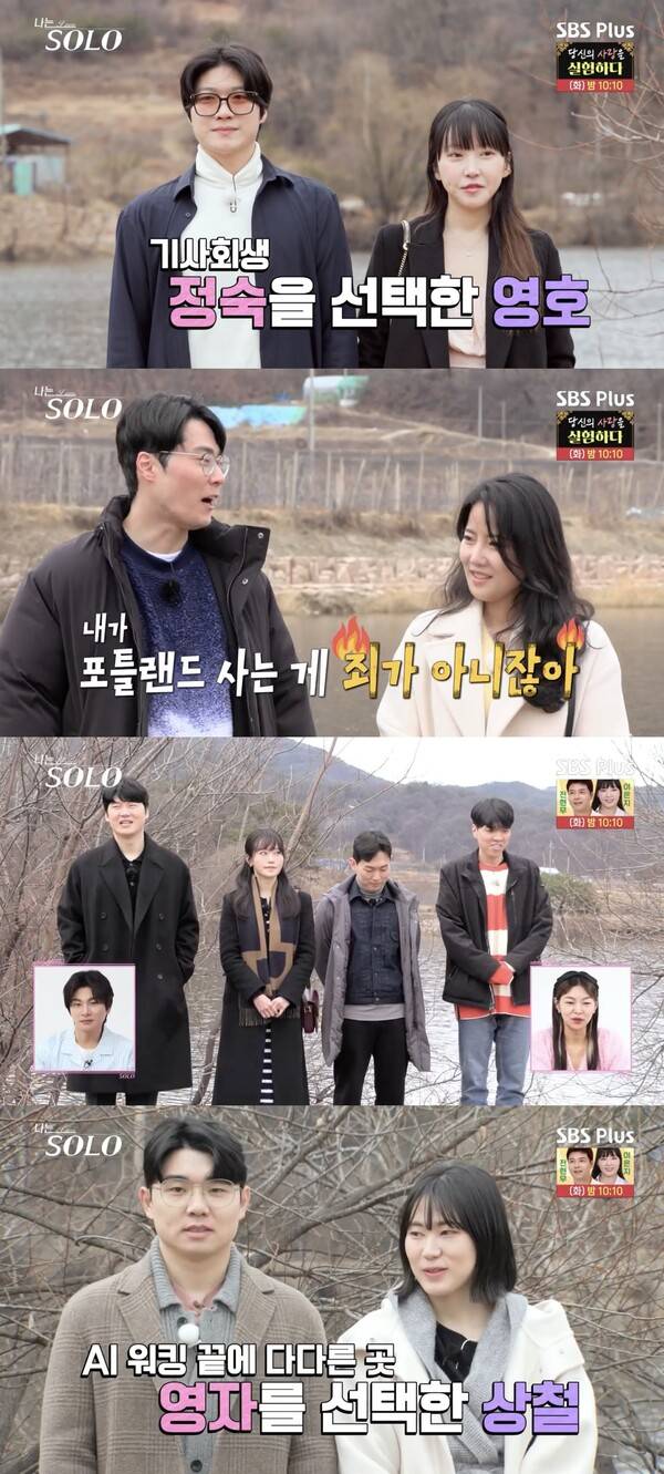 영철은 영숙에게 "오늘 선택 안 할 수 있는 권리가 있다면 (영숙을 선택할지) 생각해 보려고 했다"며 "내가 포틀랜드에 사는 게 죄가 아니잖나. 그래서 고민이 됐다"고 털어놨다.