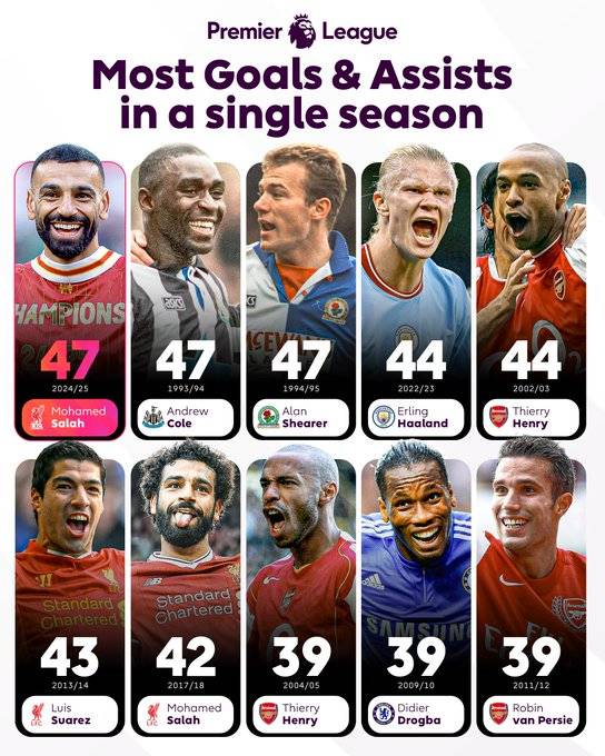 치미카스의 말대로 살라는 올 시즌 ‘미친’ 활약을 선보였다. 공식전 52경기 출전해 34골 23도움을 기록했으며, 특히 PL에서 29골 18도움, 즉 47개의 공격포인트를 적립했다. 살라가 기록한 47개의 공격포인트는 PL 역대 한 시즌 최다 공격포인트 기록으로, 1993-94시즌 앤디 콜과 1994-95시즌 앨런 시어러와 동률이다.