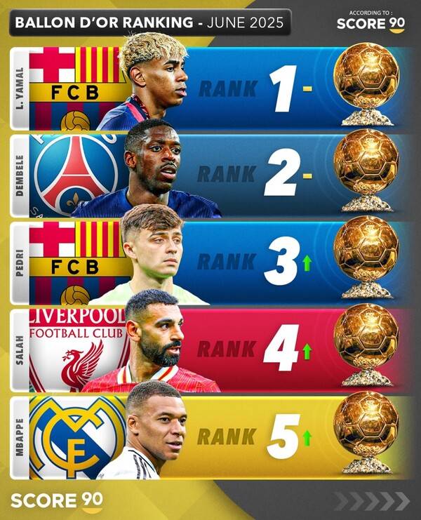 살라는 현재 우스만 뎀벨레, 라민 야말, 하피냐 등과 발롱도르를 두고 경쟁 중이다. 다만 뎀벨레의 수상이 유력하다. 뎀벨레 역시 올 시즌 공식전 49경기 출전해 39골 13도움을 올리는 등 맹활약했다. 더욱이 자국 리그 및 컵 대회는 물론 유럽축구연맹(UEFA) 챔피언스리그(UCL)까지 출전한 모든 대회에서 우승을 차지했다.