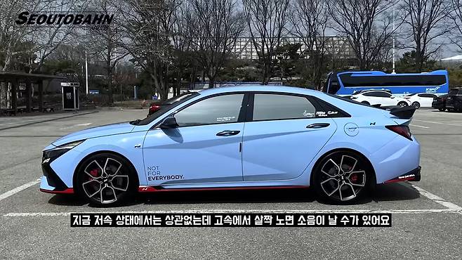 이 차량 순정 휠은 19인치 모델인데 타이어 폭이 245/35입니다. 약간 폭이 넓어서 저속 상태에서는 상관없는데 고속 상태에서는 약간 노면 소음이 날 수가 있습니다. 그리고 일반 아반떼에 비해서 편의 장비가 부족한 느낌도 있습니다.